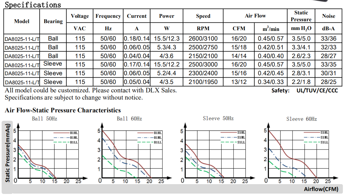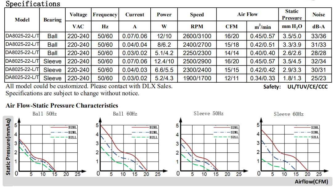 80 x80 x 25mm DA8025 115/220V 8厘米軸流風機散熱風扇