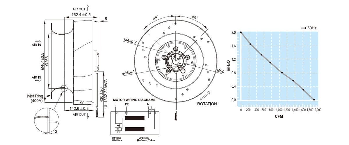 UF400AAA23H1C4A原裝臺灣進口離心風機管道空氣凈化器變頻器散熱